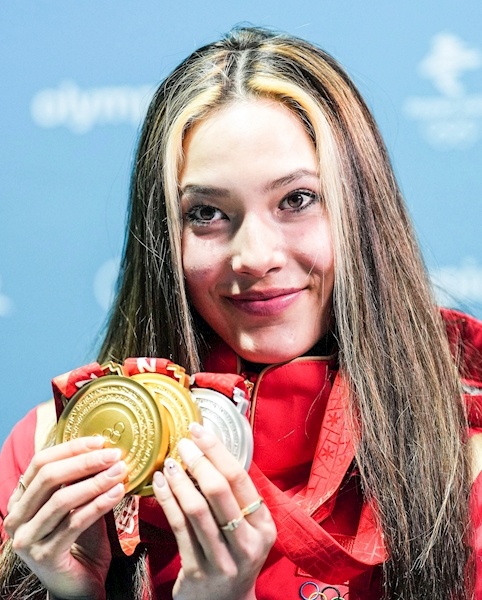 在本届北京冬奥会,谷爱凌分别参加了自由式滑雪大跳台、坡面障碍和U型场地的比赛,她的首个冬奥之旅以“2金1银”的绝佳战绩完美收官,成为史上第一位在单届冬奥会上斩获三枚奖牌的自由式滑雪运动员。
