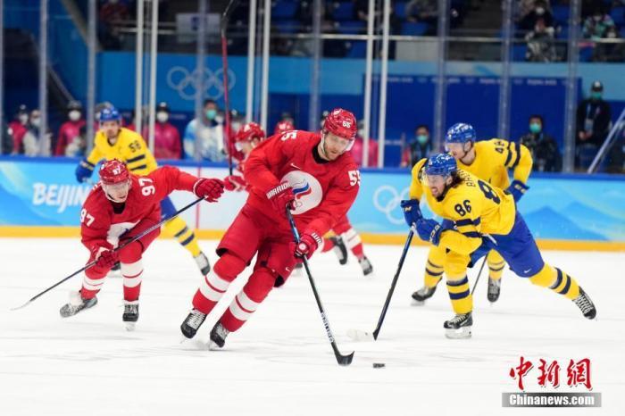 2月18日,北京2022年冬奥会男子冰球半决赛在国家体育馆举行,俄罗斯奥委会队对战瑞典队。 中新社记者 毛建军 摄
