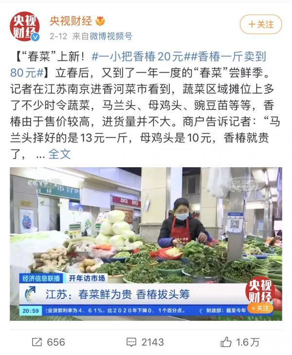 香椿受天气影响而价高