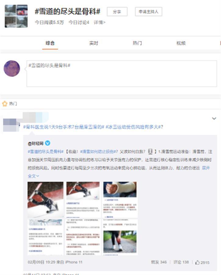 从各个地方下雪开始,因滑雪骨折的人数就明显增多。冬奥会期间,各地骨科医生晒出的骨伤帖,时不时冲上热搜。由于接诊量不断上升,武汉市第四医院(武汉市骨科医院)甚至从2月11日起专门开设了“冰雪运动损伤门诊”。