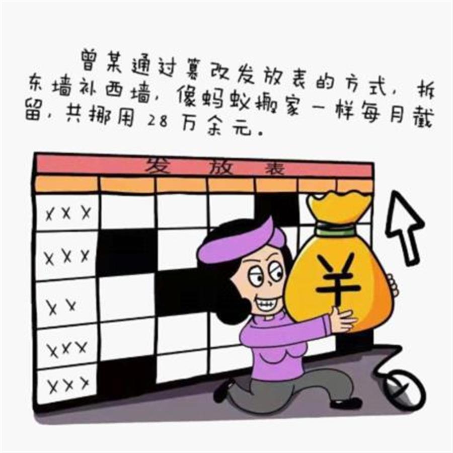 曾某通过篡改发放表的方式,拆东墙补西墙,像蚂蚁搬家一样每月截留,共挪用28万余元。
