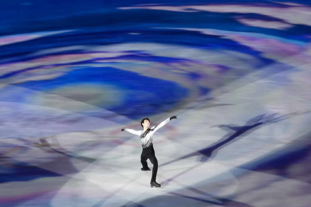 ↑2月20日,日本选手羽生结弦在表演滑中。新华社记者 王毓国 摄