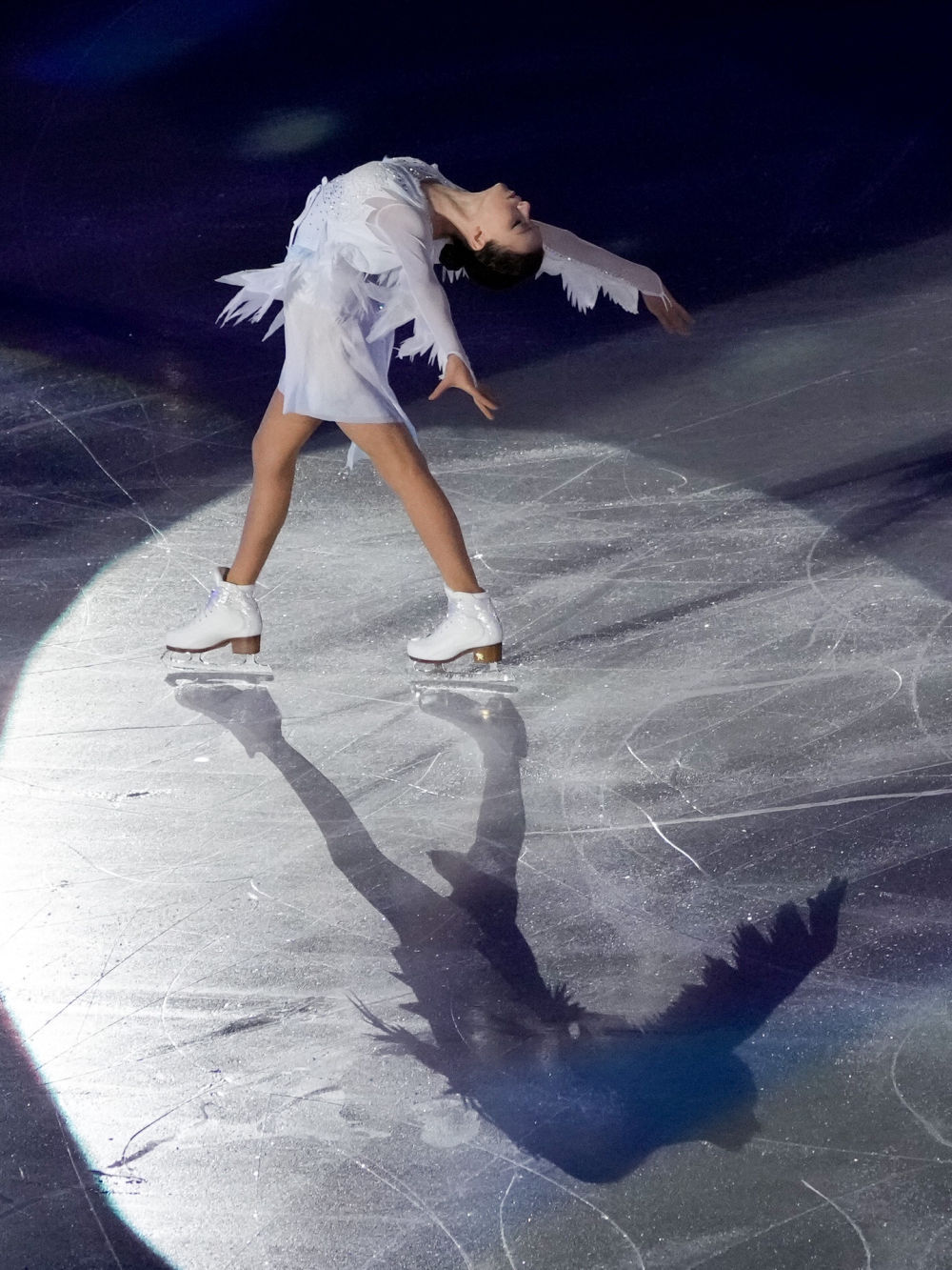 ↑2月20日,俄罗斯奥委会选手亚历山德拉·特鲁索娃在表演滑中。新华社记者 王菲 摄