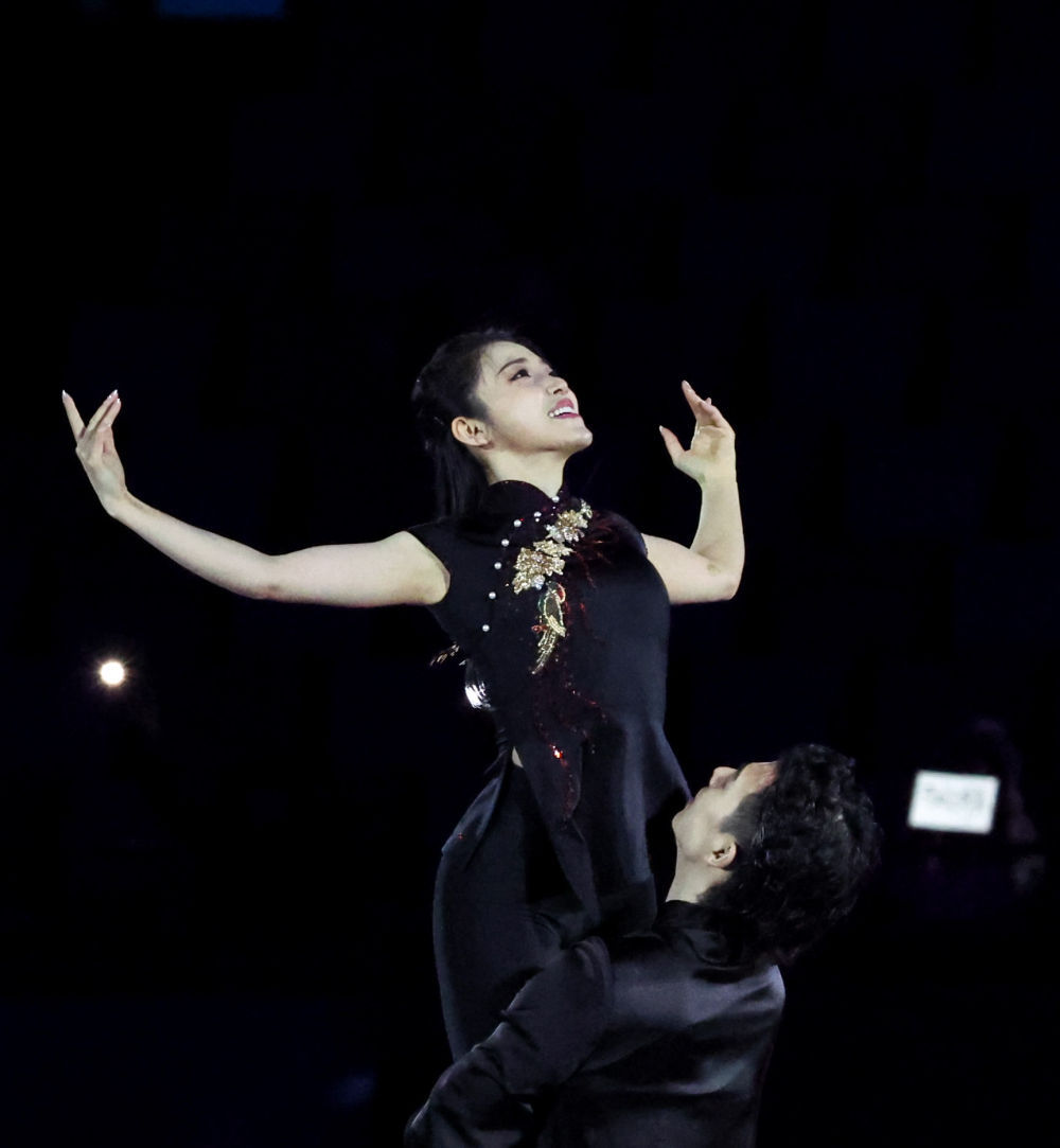 ↑2月20日,中国选手王诗玥(上)和柳鑫宇在表演滑中。新华社记者 张玉薇 摄