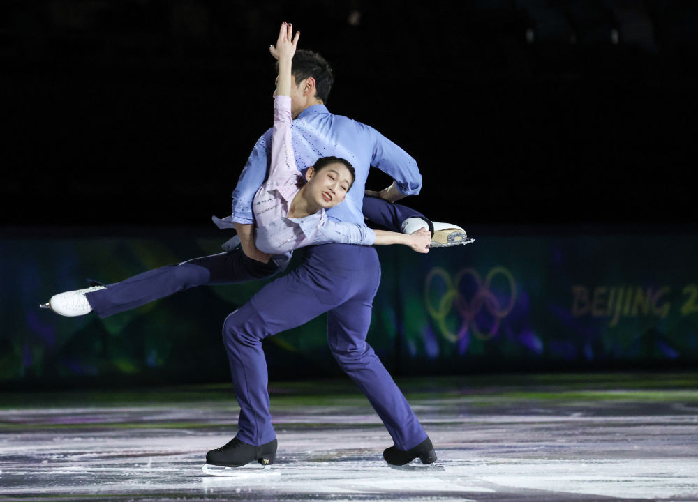 ↑2月20日,加拿大选手派珀·吉勒斯(右)和保罗·波里尔在表演滑中。新华社记者 张玉薇 摄