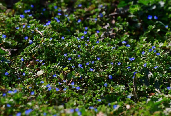 武汉金银湖绿道边,阿拉伯婆婆纳蓝色的小花便纷纷冒了出来。