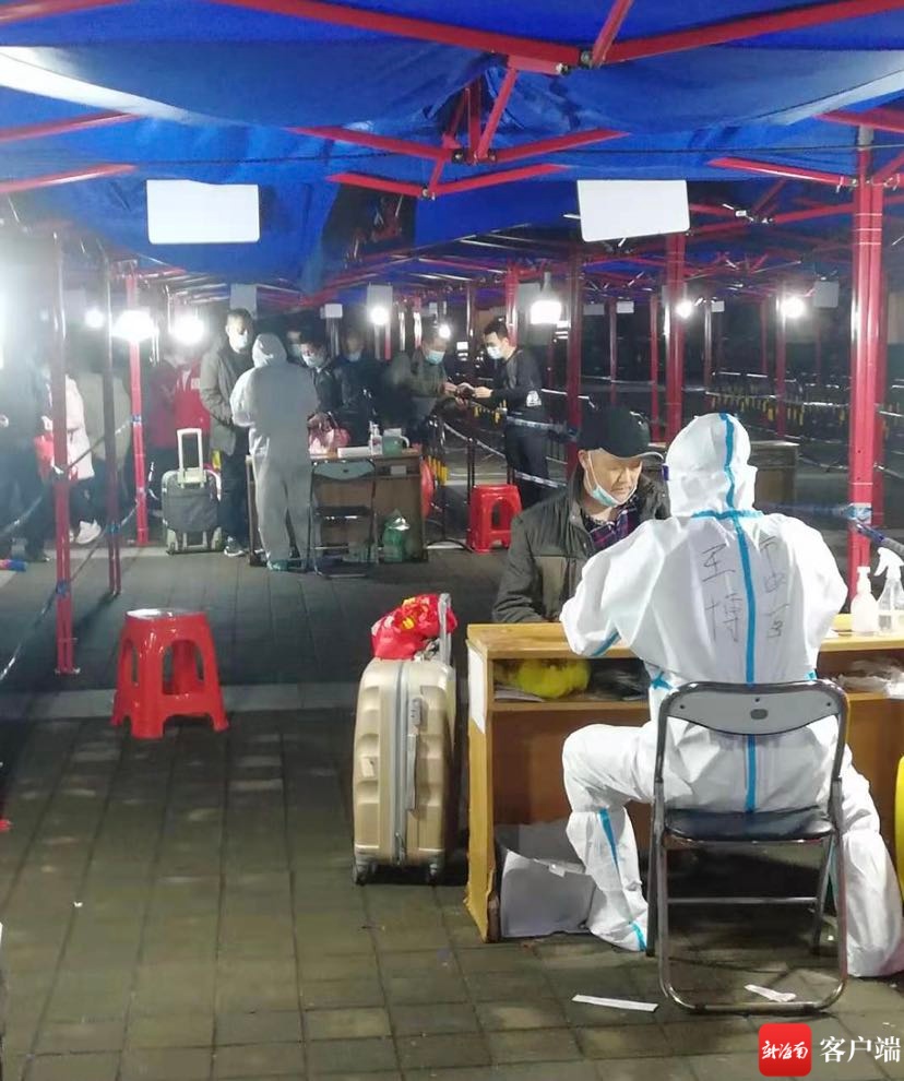 新海南客户端、南海网、南国都市报2月20日消息(记者 孙春丽 文/图)2月19日晚,夜幕降临,海口冷风夹着细雨,空气阴冷而潮湿,各大港口码头和火车站有这么一群人,他们没有休息,而是继续坚守在防疫一线,耐心为旅客做着核酸采样工作。