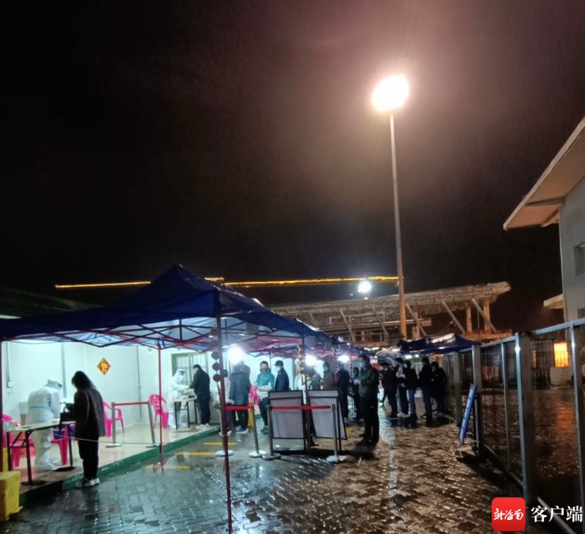新海港码头,夜里雨中核酸采样点。