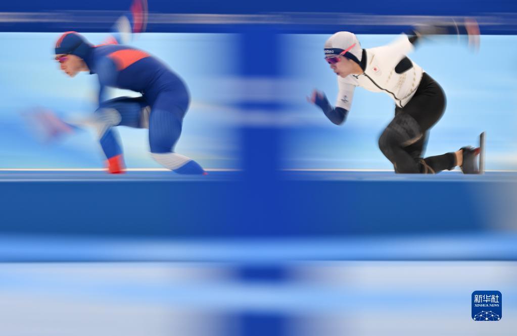 2月12日,中国选手高亭宇在北京冬奥会速度滑冰男子500米决赛比赛中。新华社记者程婷婷摄