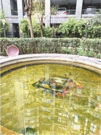 2月15日,记者在汉口怡景花园小区看到,中央花园设置了一个葫芦形景观水池,旁边配有一个圆形小水池,池水清澈见底,金鱼游弋,水池周围绿化颇具热带风情,旁边挂着“禁止游泳,深水危险”提示牌。据了解,小区建成以来,景观水池一直使用了18年,池水一直保持眼前景象。