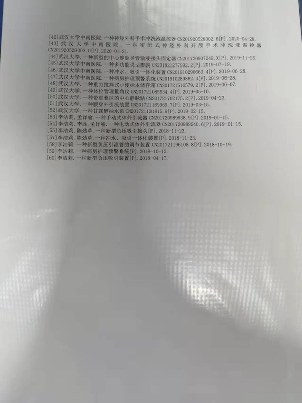 据介绍,近年来,中南医院一直在尝试将医护人员的专利推向企业,但由于生产专业化等因素的制约,大部分专利并没有转化为产品,真正用于临床。李洁莉对此并不气馁,她计划今年和团队成员再申报20项专利,重点申请发明专利,“申请专利的过程,其实也是自己不断发现、思考的过程,通过这一过程可以改进护理工作的细节,让自己的本职工作做得更加完善、细致”。
