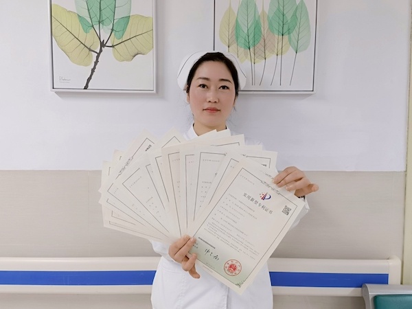 这是李洁莉收到的第一张专利证书,令她很有成就感,钻研思考的劲头也更足了。此后,她经常在日常护理工作中寻找灵感,加班琢磨专利。任桥梁工程师的丈夫也被李洁莉发动成为“助手”,常为她提供绘图等方面的帮助。“智能医用手腕带”“多功能说话瓣膜”“一种压疮敷料”……从2018年到2021年,李洁莉共拿到60个专利证书,成为同事们眼中小有名气的“专利护士”。