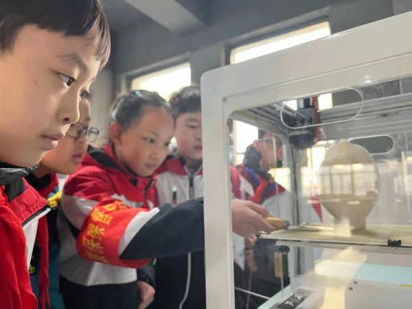 看着自己制作的冰墩墩,孩子们的欣喜之情溢于言表。“这只是一个开始,我以后学好了知识,会用3D打印技术打印出更多东西,能实现更好的想法。”五(2)班的上官樟丞说。