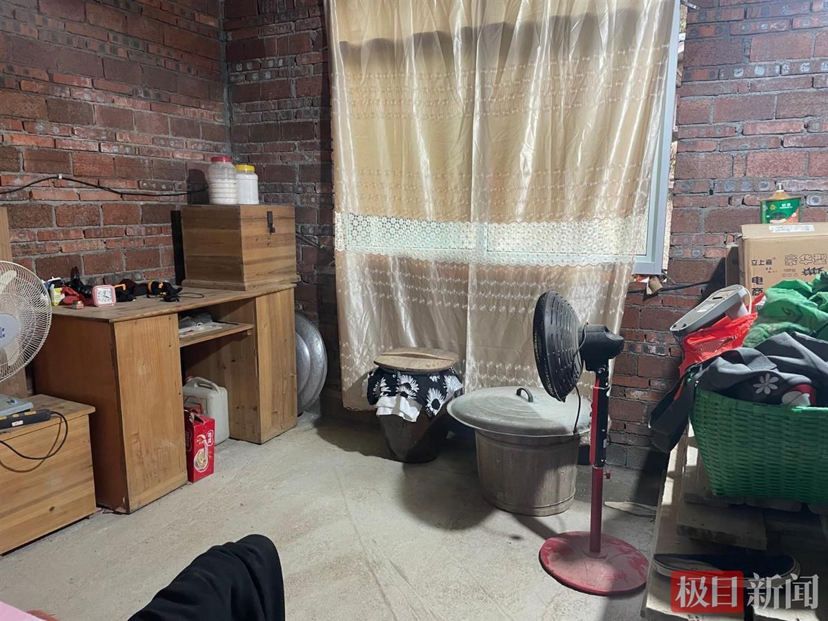张加滇生前居住的房间仍然保持着之前的陈设,两台风扇和一个闹钟是房间里仅有的电器,墙边堆放着一些他从前的衣物,床底的鞋子只剩下其妻子的一双。