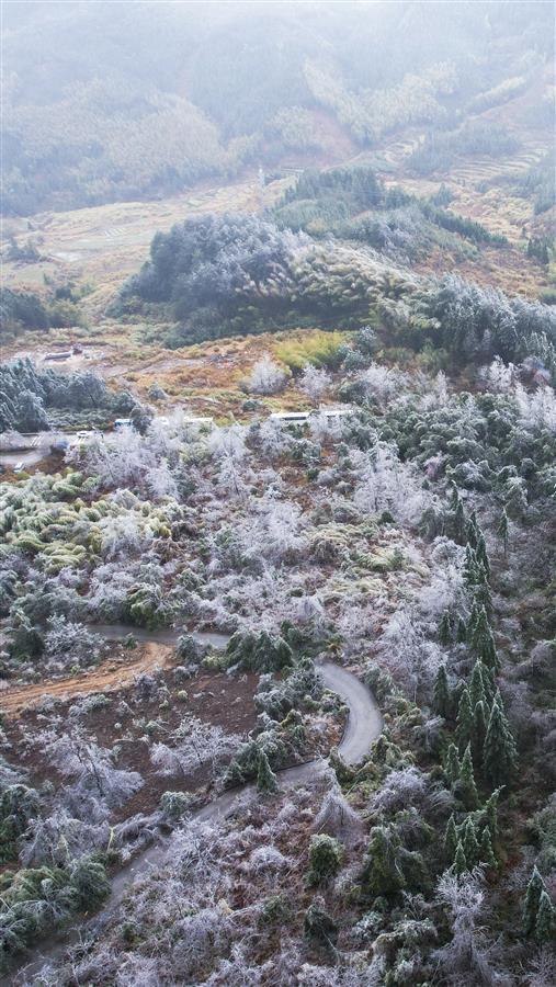 粤北多地现冰雪奇观