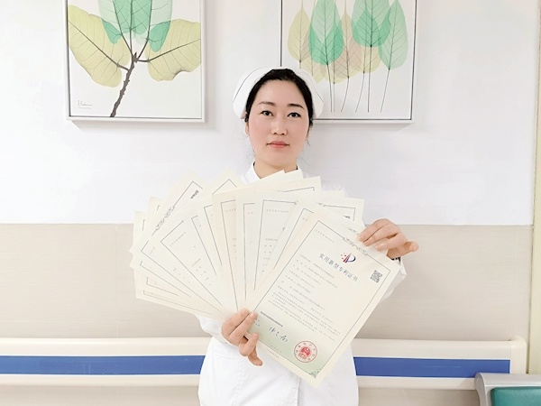 “这是我第一个成功申请的国家实用新型专利。”李洁莉介绍。收到证书的时候,她的成就感爆棚。从那时开始,她一发不可收拾,不断在工作中观察、思考、研究,到2021年底,她先后获得60多项专利,同事们亲切地喊她“专利护士”。