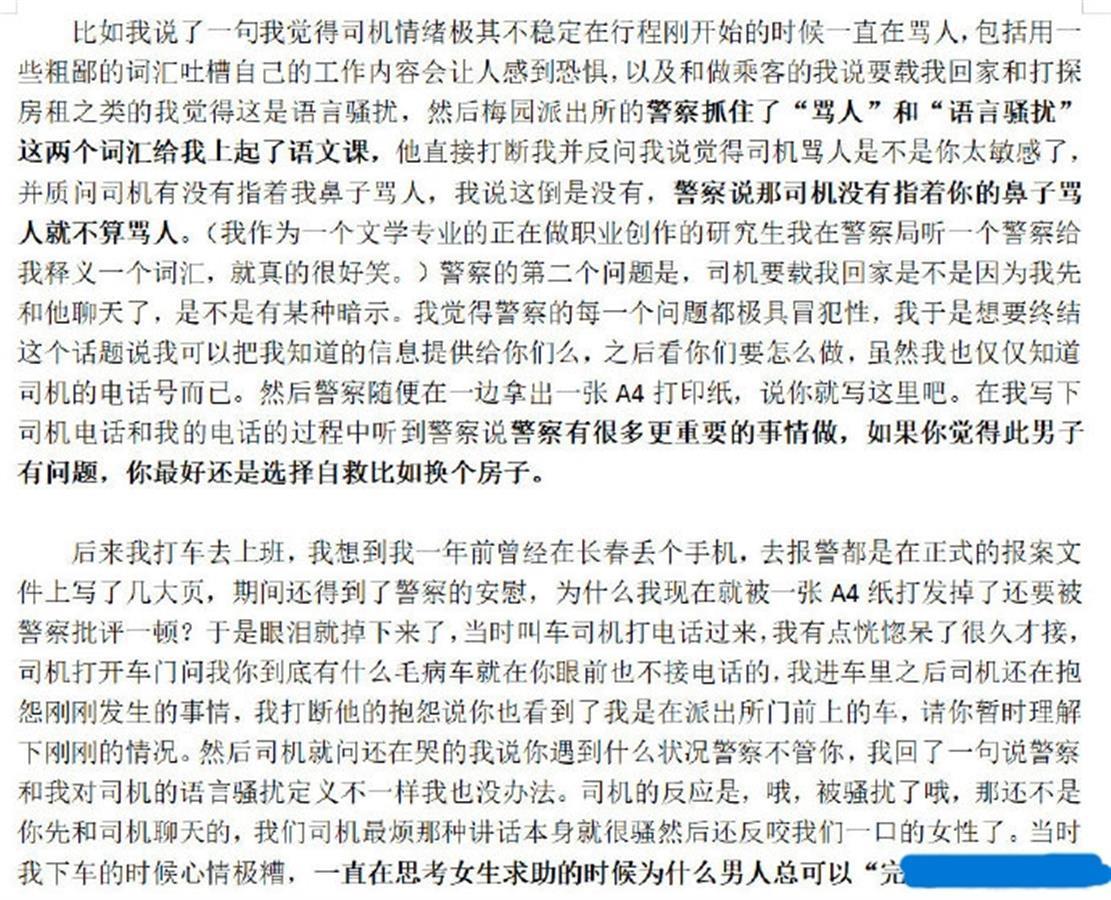 上车之后,司机情绪暴躁,一直在抱怨工作,并一直在爆粗口。中途,司机称自己开的车电量不足,希望刘女士先跟他回家换一辆开着顺手的车。刘女士拒绝之后,司机又开始打探她的房租金额和存款,这让她感到被冒犯。