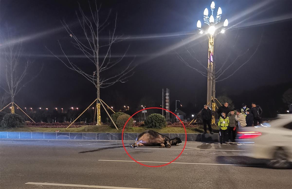 2月21日晚8时许,武汉市东湖新技术开发区,在高新大道(光谷八路往未来一路方向),牛群在穿行马路时发生车祸,造成大牛小牛一死一伤,两辆私家车驾驶员没有大碍。