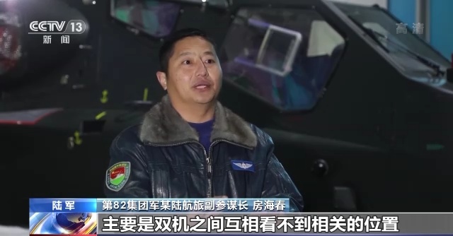 第82集团军某陆航旅副参谋长 房海春:夜间的编队训练,主要是双机之间互相看不到相关的位置,我们要通过夜间的编队训练来提升我们飞行员之间的协同意识,配合意识,进一步培养我们飞行员之间的默契关系。