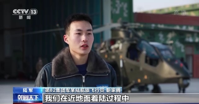 第82集团军某陆航旅飞行员 靳家腾:我们在近地面着陆过程中,由于地面的浮雪受旋翼的气流影响,容易吹进发动机或者旋翼,构成一定的安全隐患,对此,我们会采取较高的高度,悬停吹雪,以保证平稳安全降落。