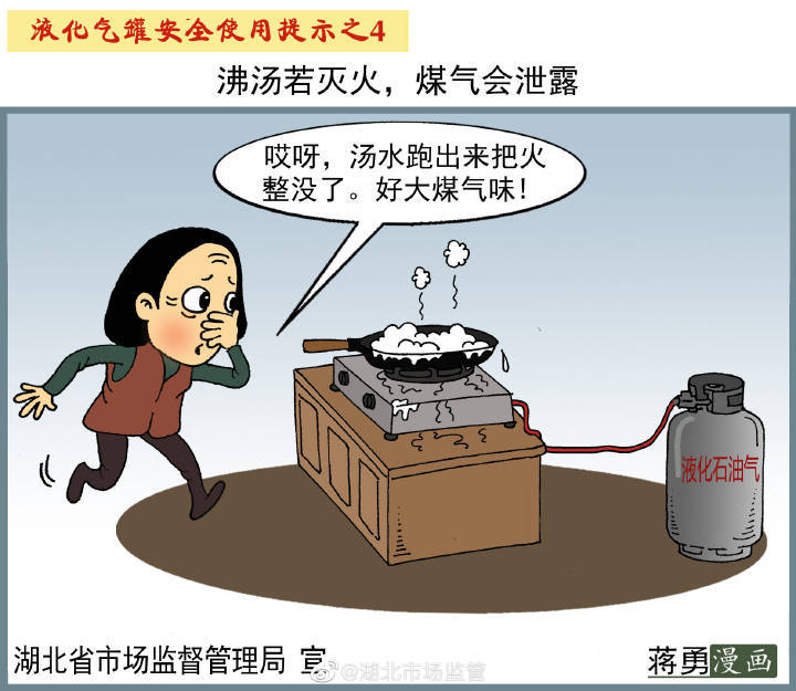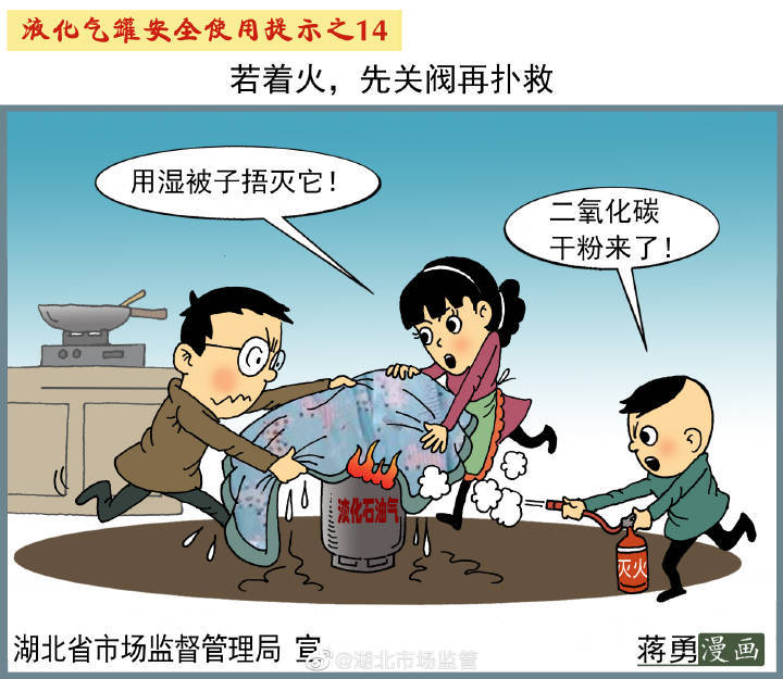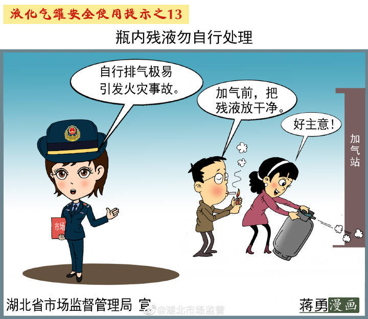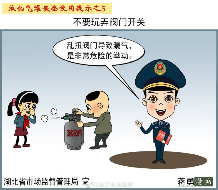 2月23日,湖北省市场监管局对外发布一组漫画,以通俗易懂形式告知市民安全使用液化气罐的注意事项。