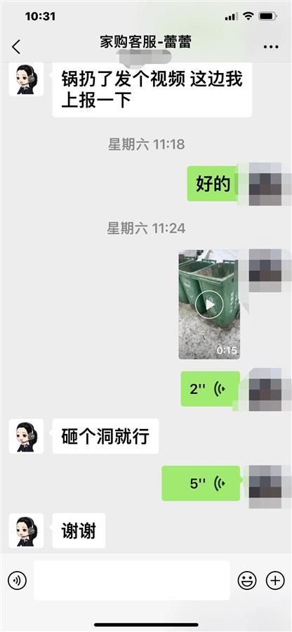 刘先生有些生气,找到购物客服人员,对方表示可以全额退款,只是刘先生必须将锅寄回。随后他与客服人员协商了退货运费,对方又表示刘先生可以将锅扔掉,前提是把锅“砸个洞”,还要录制视频。几天后,刘先生收到退款。