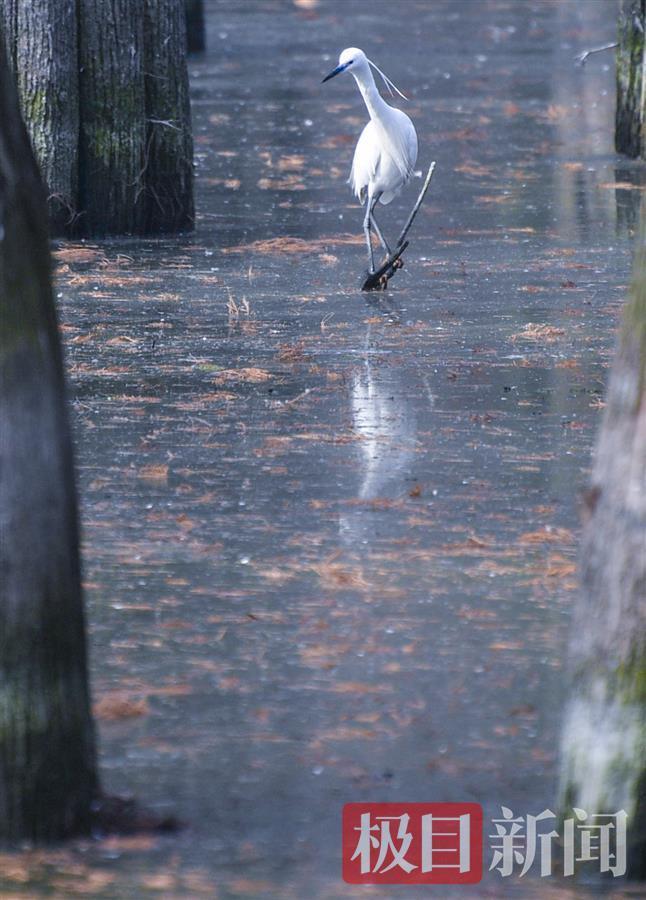 颜军笑着说:“鹭类喜欢在树上筑巢,这片池杉林正好在水中,水中又有鱼,有水有鱼,正合它们胃口。” 其实,这片池杉起初是栽植在陆地上的。