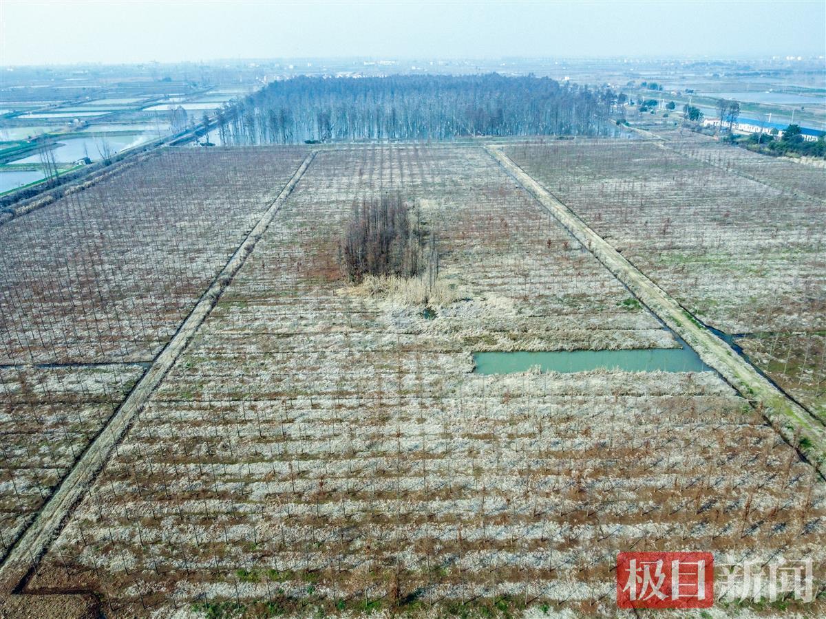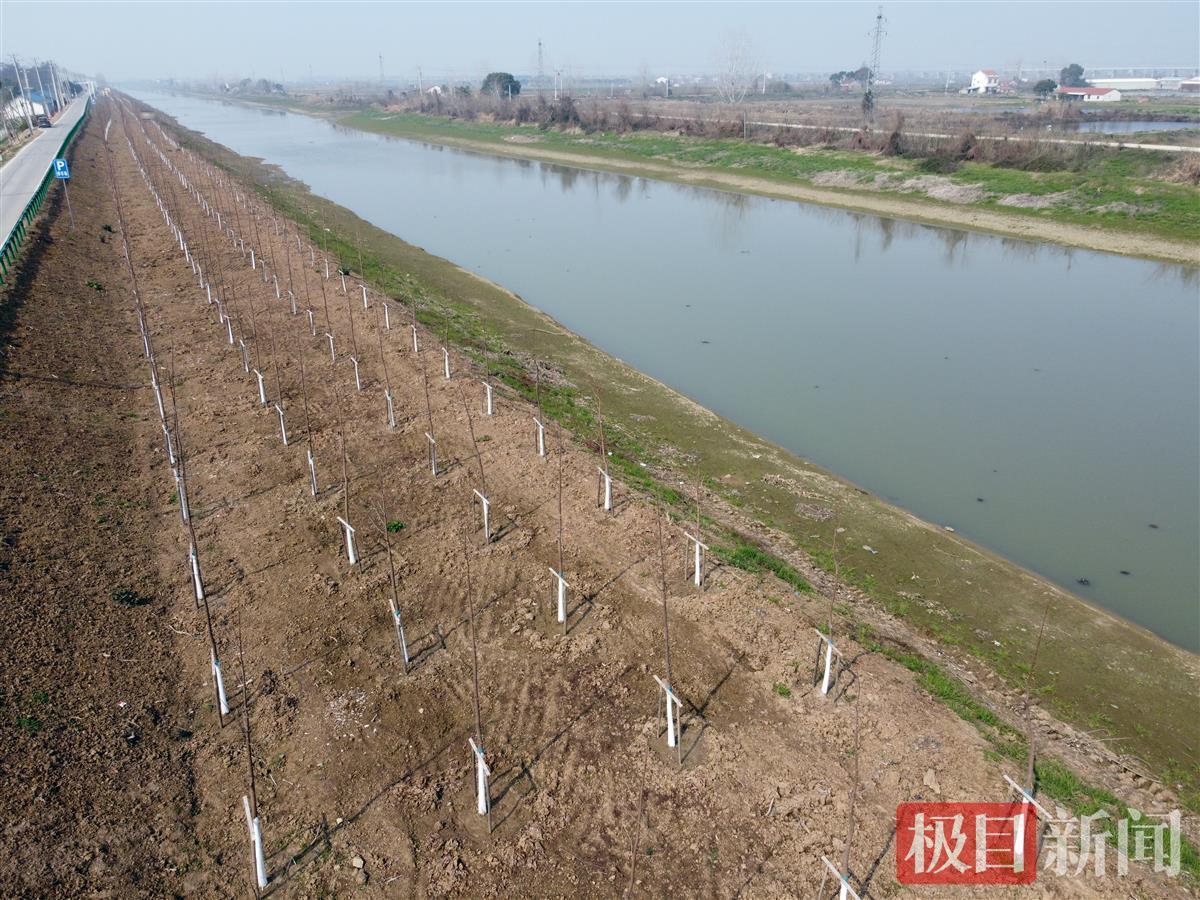 河堤另一侧,是新栽的一片小树苗,与之相呼应。“这是去年11月底刚栽的2000棵池杉,开春后就会呈现一幅新图景,明年来看就更有气势了。”池杉生长速度快,陶桂林满怀期待。