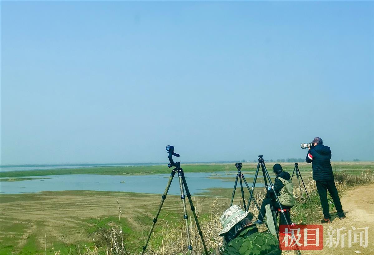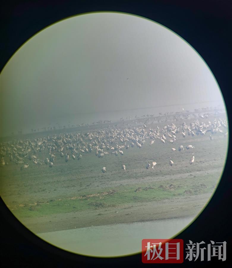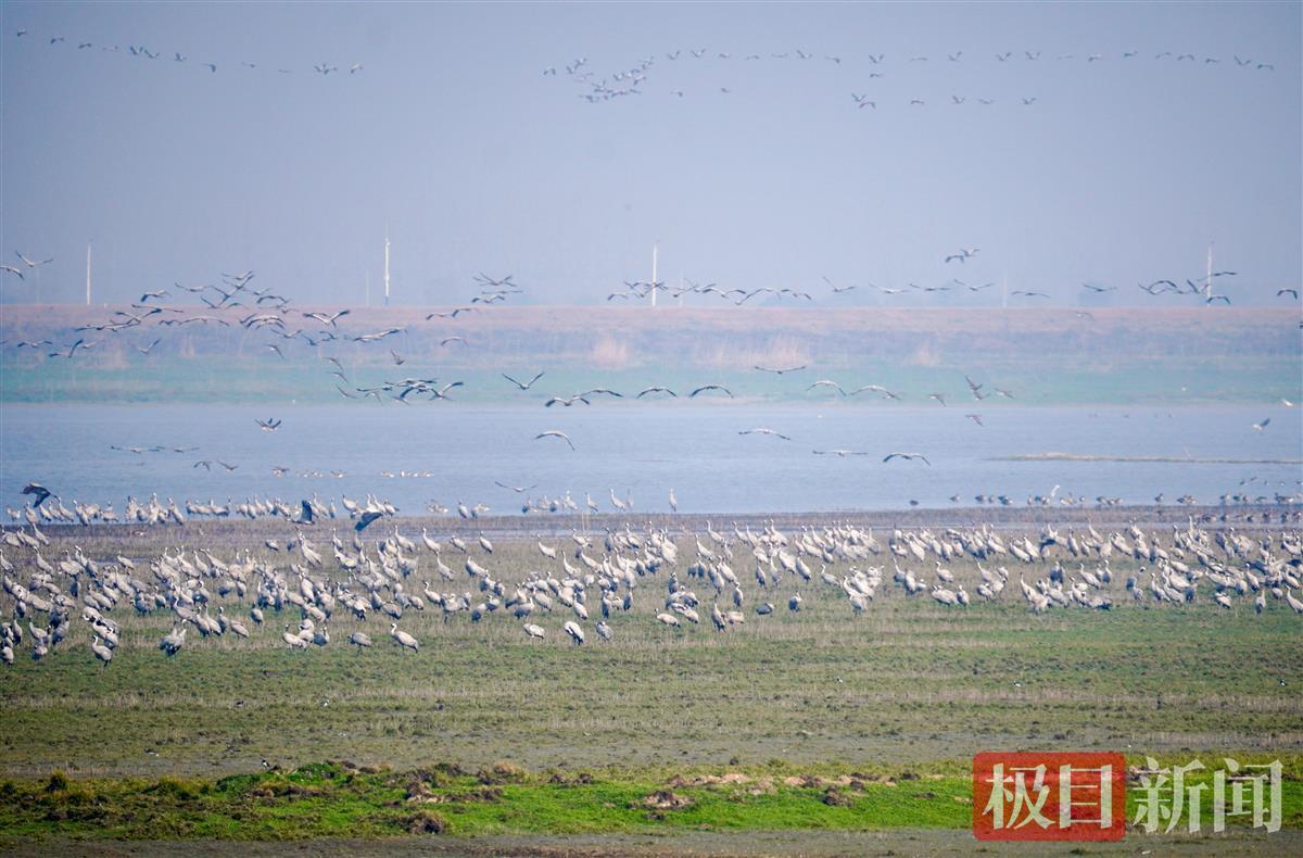 2月25日上午,武汉部分鸟类调查观测者来到蔡甸区消泗乡沉湖边,不禁被眼前成千上万的国家二级保护动物灰鹤给惊住了。