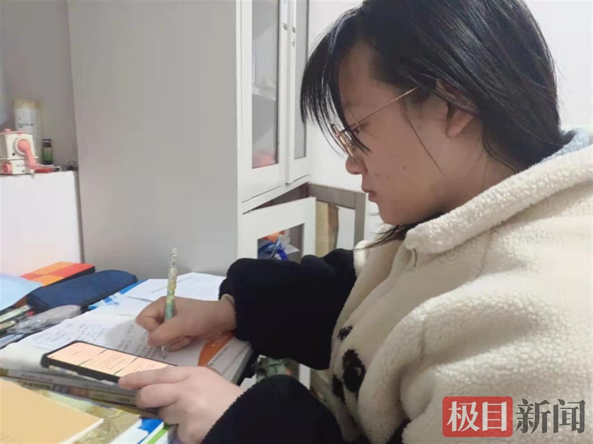 龚珊晚上在家根据线上发布的内容复习功课