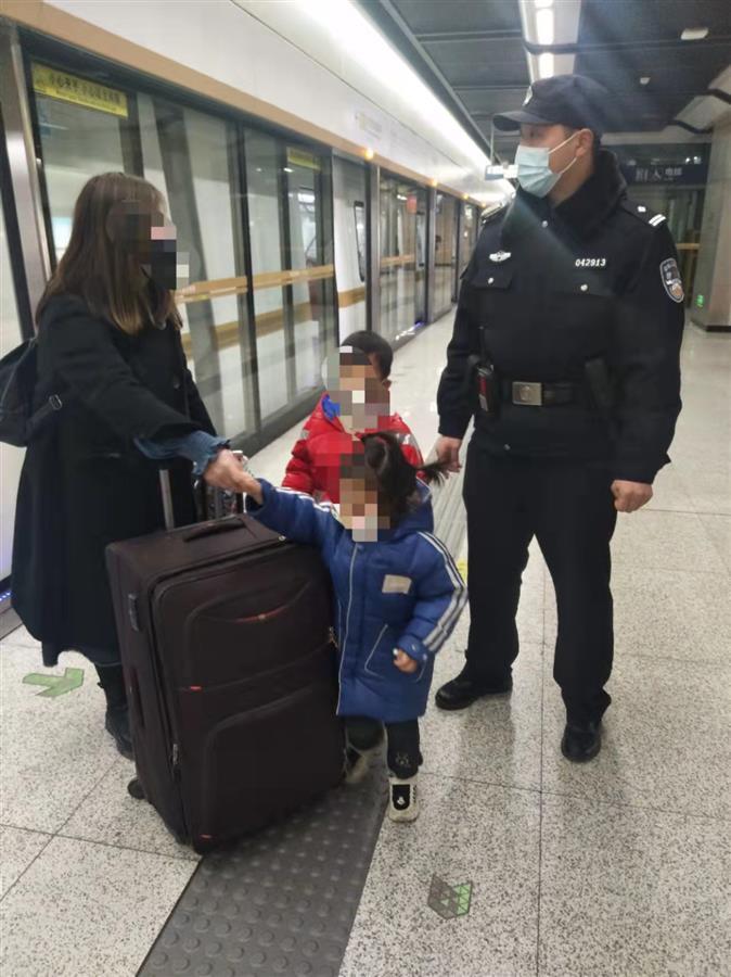 原来,该女子独自带着6岁的儿子和4岁的女儿,拖着沉重的行李在赵家条站换乘时,因列车到站,小女孩抢先一步跑进了车厢,恰好此时地铁车门关闭,一家三口相隔于车门内外。
