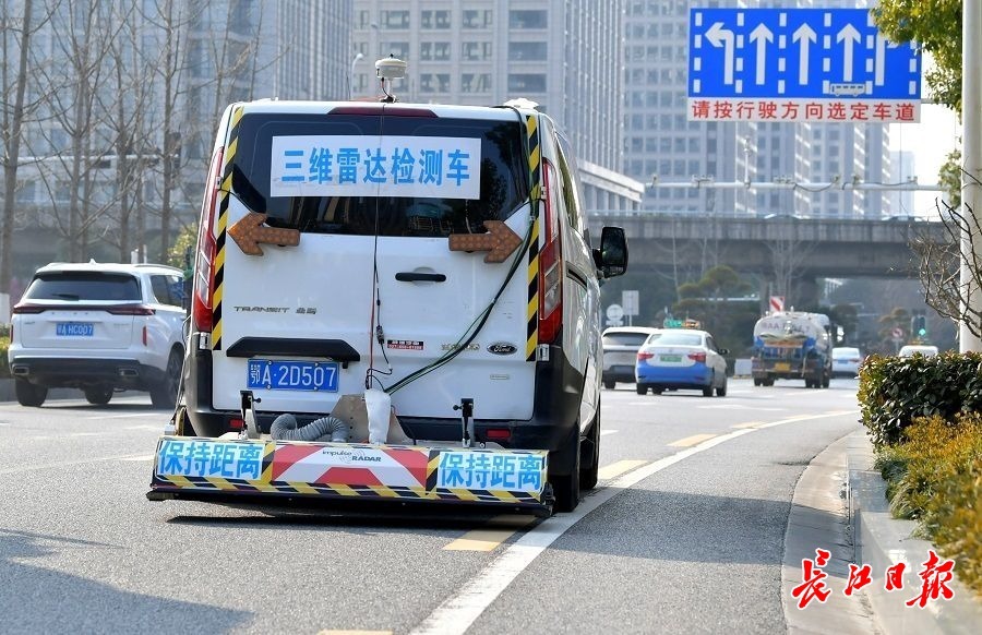 “像拍CT一样给道路做体检,像医生一样给道路号脉。”2月26日,长江日报记者来到武汉中央商务区,跟随江汉区城管局两台高科技道路检测车,探访“道路体检神器”如何给道路拍“CT”,如何诊断道路病害。