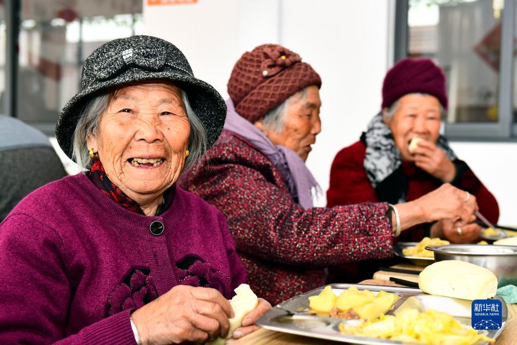 2月27日,在日照市岚山区虎山镇黄家峪村养老服务中心,老人在吃午餐。