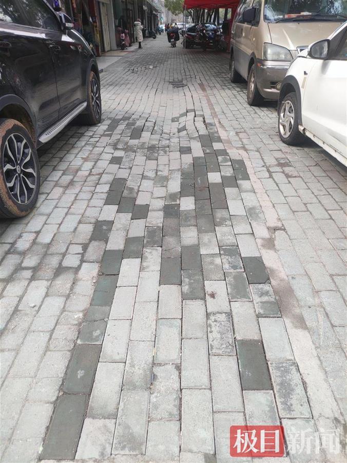 2月21日上午,极目新闻帮到底记者在绿色家园小区1号门前看到,紧挨着小区正门右边的人行道上,一片长5米宽3米左右的路面坑洼不平,部分地砖塌陷,形成了数个深约10多厘米深的小坑。