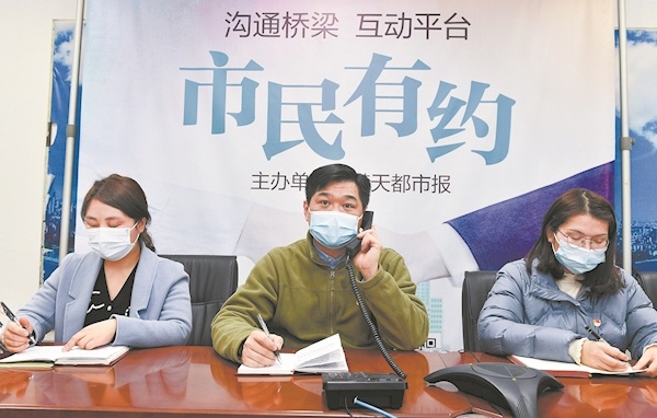湖北省消委副秘书长蔡浩(中)接听热线