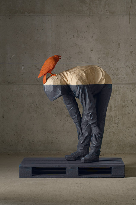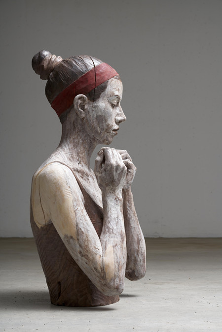 几位艺术家不约而同地在雕刻方式上表现出圣像般的仪式感。以木雕作为标志的意大利北部格勒登山谷,是该地区宗教雕像的主要产地,将近三百年的木工历史造就了许多家族工坊,他们以精致的传统手艺得以生存、繁衍。