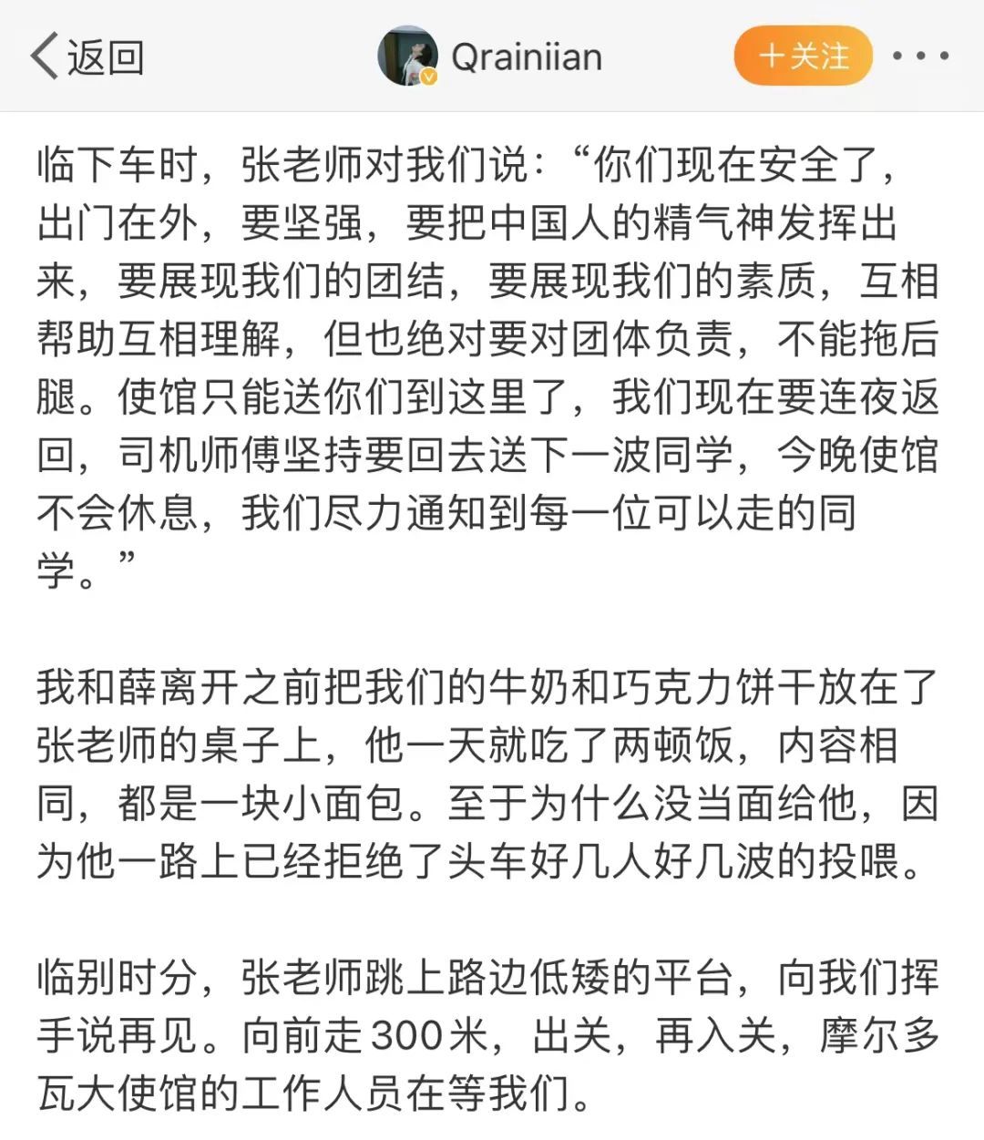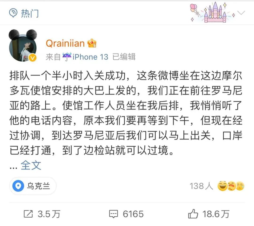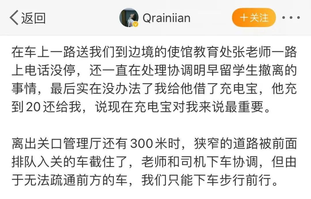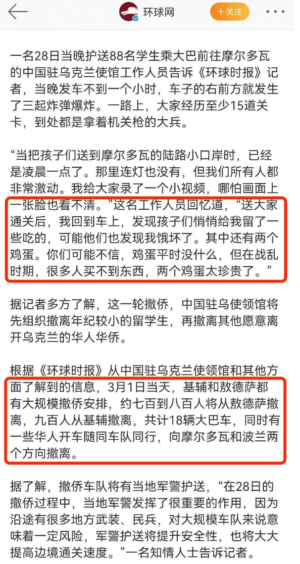 3月1日,在使馆工作人员护送下,一位成功从乌克兰撤离的留学生分享了自己的经历,博文迅速刷屏。