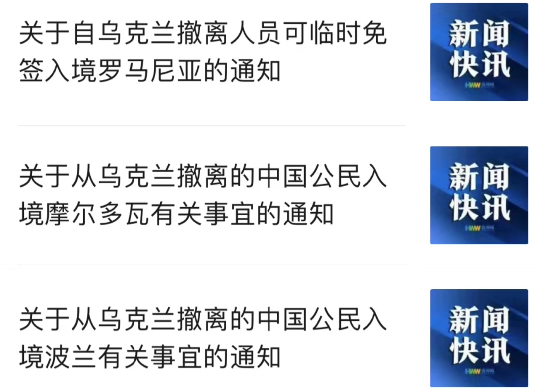 中国驻罗马尼亚大使馆:自2月26日起,罗马尼亚对自乌克兰撤离的第三国公民实行过境免签(可停留15天),中国公民持护照等有效旅行证件,均可自“乌-罗”和“摩-罗”边境口岸进入罗境内。