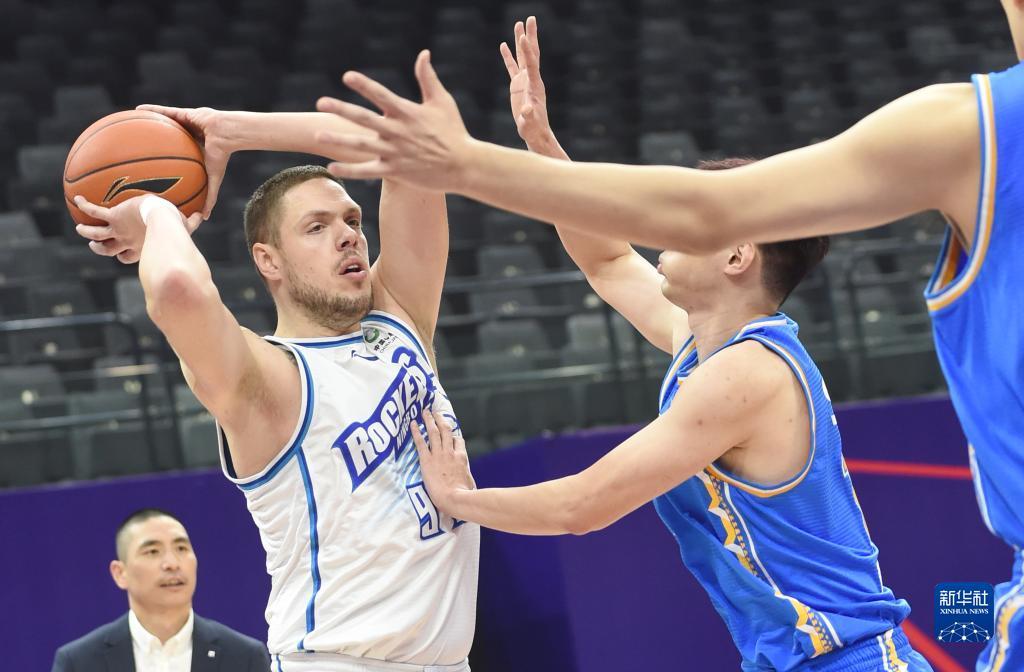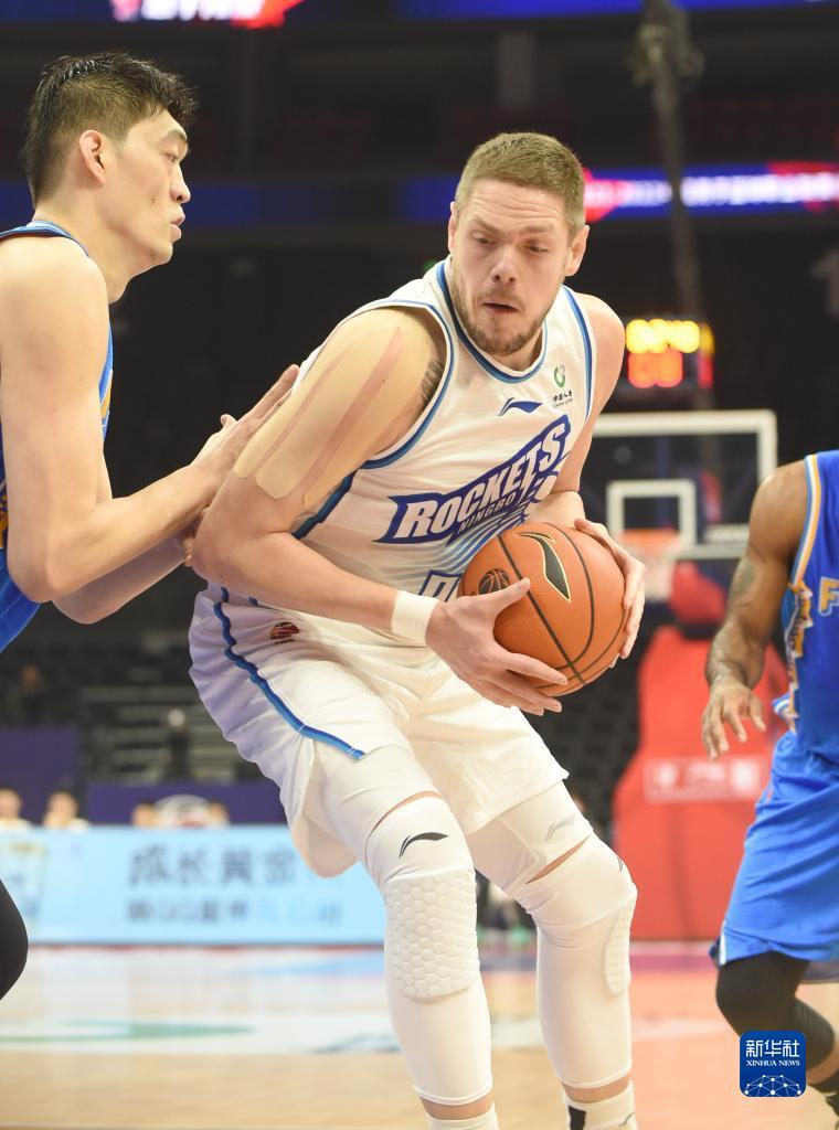 3月2日,宁波甬兴证券队球员弗拉迪米尔(左)在比赛中进攻。