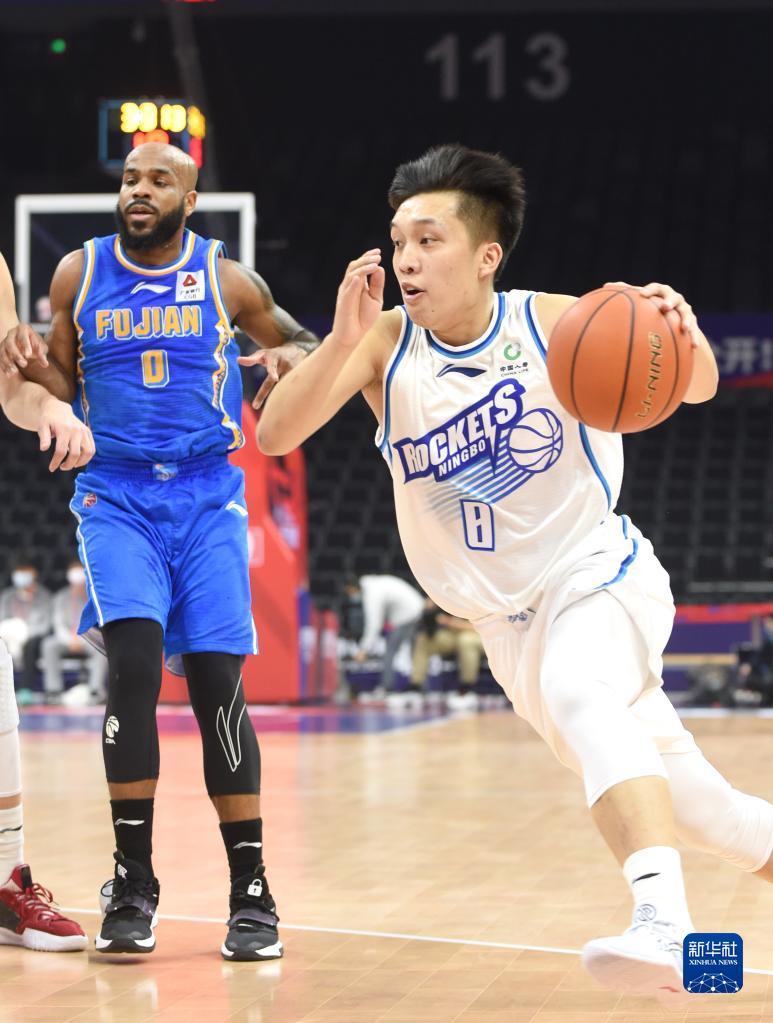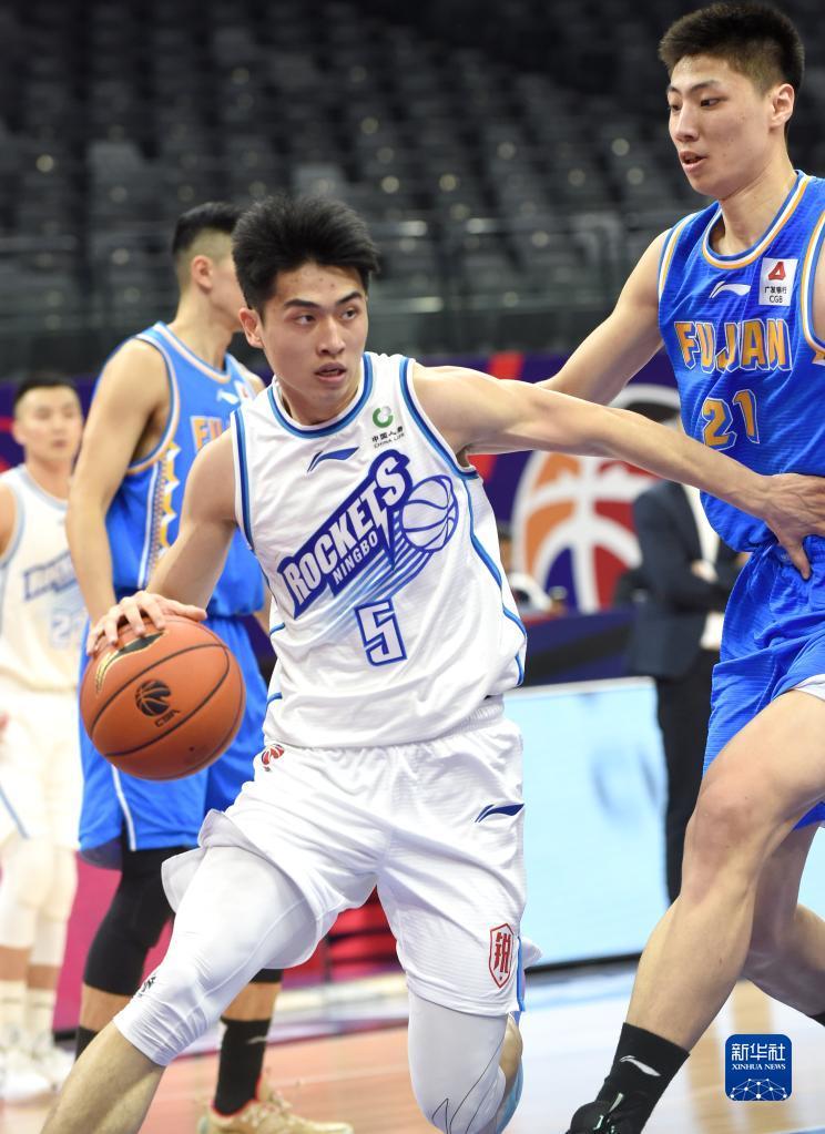 当日,在广东省佛山市顺德区进行的2021-2022赛季中国男子篮球职业联赛(CBA)第三阶段第29轮比赛中,宁波甬兴证券队对阵福建浔兴股份队。