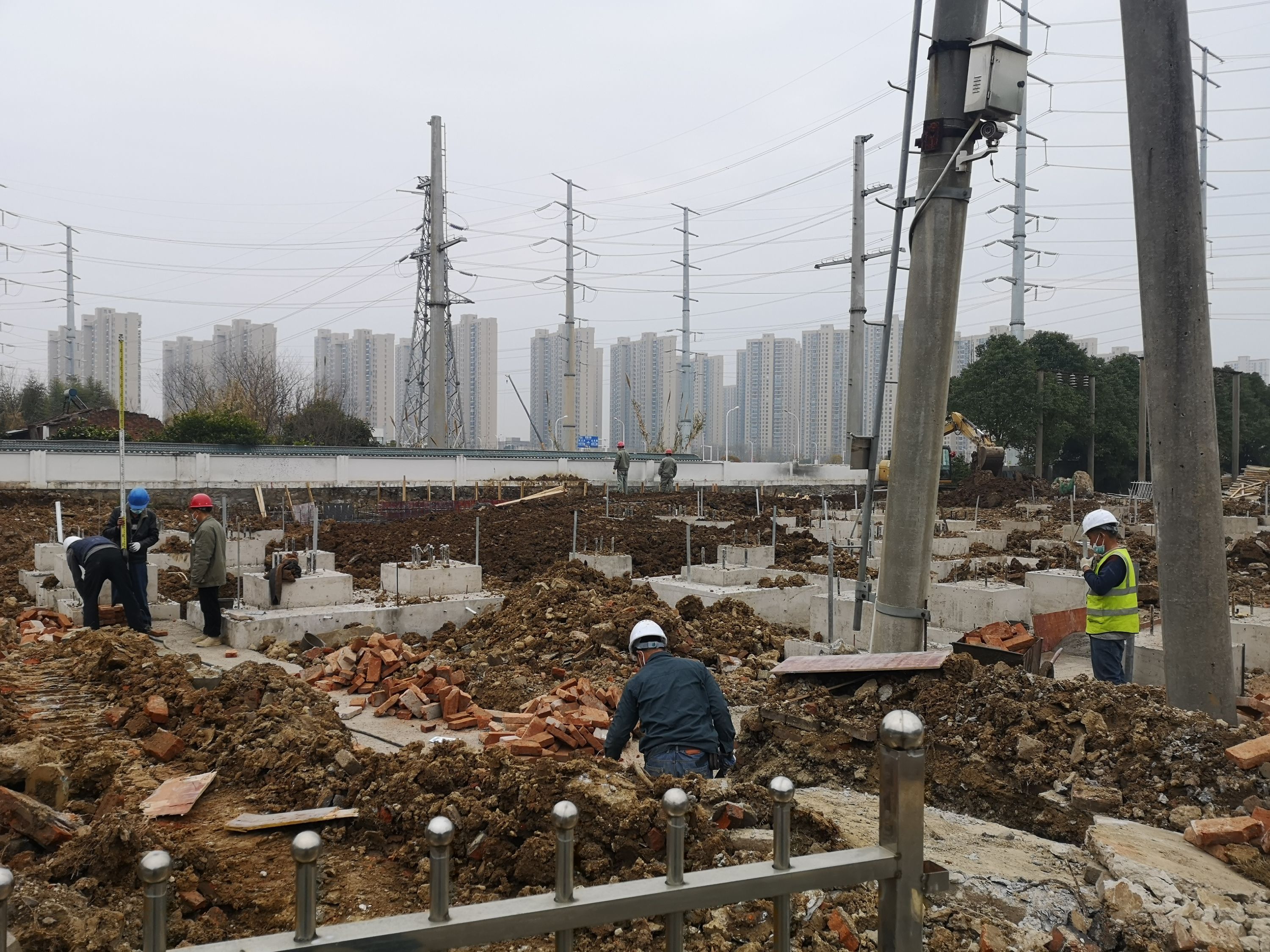 2日上午,汤逊湖泵站的变电站建设现场内,郑伟正指挥工人们一起对外部地基进行回填。自2021年9月起,汤逊湖泵站变电站就开启了变电站的拆除新建工作,由原来的单电源供电变为双电源供电。