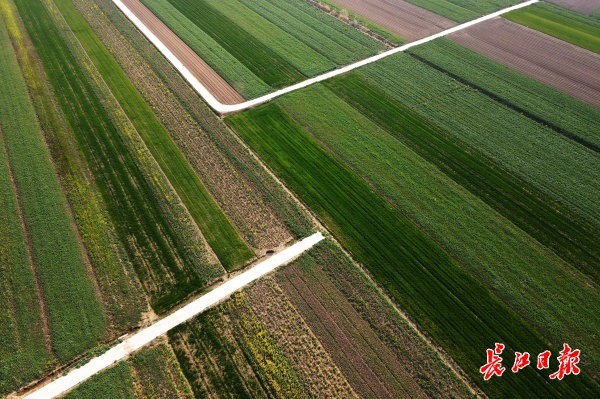 3月2日,记者通过无人机角度俯瞰,蔡甸消泗乡田野色块分明,线条优美,纵横阡陌间写满春的华章,把春天的乡村装扮得格外迷人。