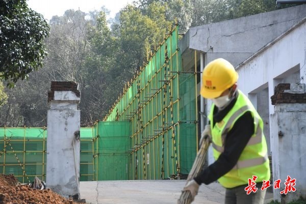 “森林防火通道绿道化改造也是改造项目之一,在不影响树木生长的前提下,对山上破损路段、断头路进行改造,改造后通道总长约为7公里,增设游乐休憩功能,增加灯光亮化,让游客真正沉浸式深入大自然。”在马鞍山森林公园吹笛路上,长江日报记者抵达一处施工地点,只见施工人员正在拆除面前的老旧房屋,一侧的滴翠潭则进行着清淤工作。