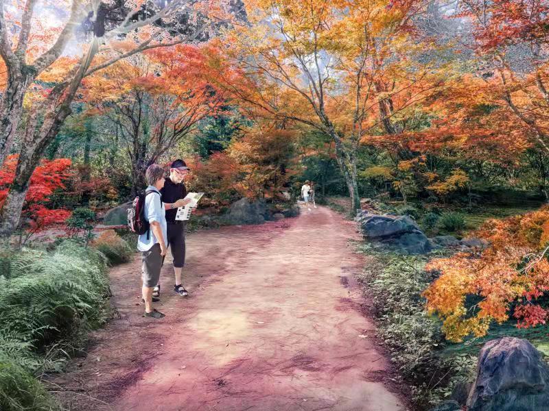 根据前期长时间深入山林中摸查,针对改造区域的不同,马鞍山森林公园建设者将改造山林划分为重点提升区、一般提升区和现状保留区,分级改造提升。以尊重场地现状、突出景观特色、强化生态功能为主导思想,以场地内山体及现有绿化为基础,增加20余种色叶乔木与灌木地被,并选用适应山林的兰花、三七、枸杞、麦冬等地被植物品种,以7种不同的组合方式交错播种,形成以橙黄色为主色调,紫色、红色为辅的特色林相,营造多树种、多层次的复合植物群落,秋冬季将呈现更加五彩斑斓的山林景象。