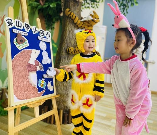 “穿山甲真可爱啊,我们都要保护它!”中三班的邓禹戈小朋友听了老师的介绍,知道了穿山甲是国家一级保护野生动物,捕杀、贩卖、食用穿山甲是违法行为。大一班王瑞雅也感叹:“威风凛凛的东北虎是百兽之王,它也是国家一级保护动物、濒危物种,我可不想让它们消失。”