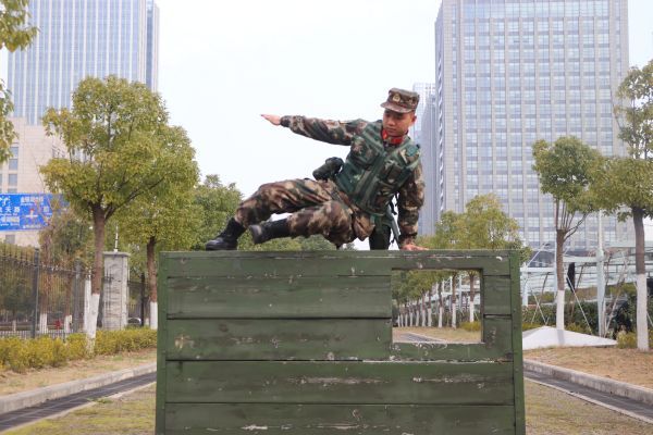 优秀义务兵李琪琪参加训练场面。通讯员余帅 摄