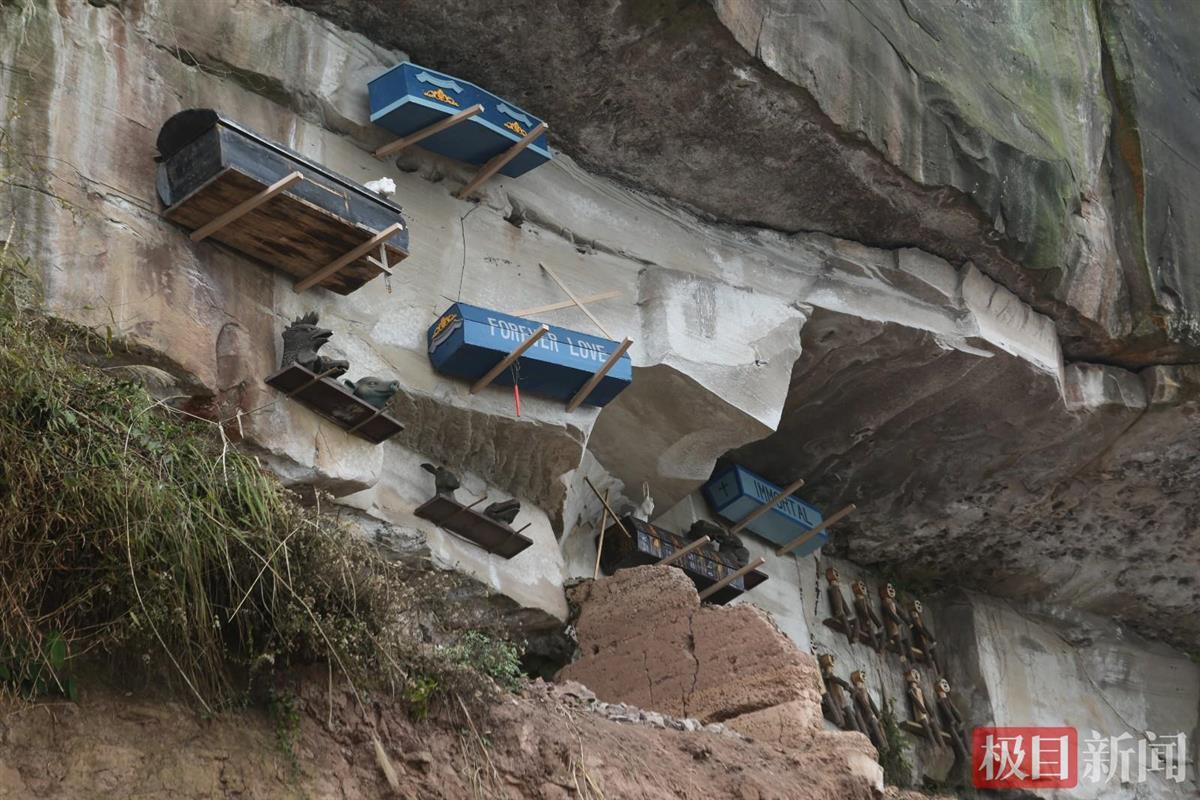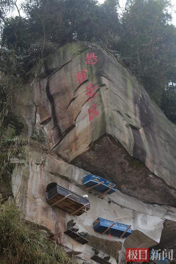 3月3日,家住重庆市区的吴先生自驾到一处山区时,突然发现车窗外的山崖上嵌着几具“棺材”以及动物雕像,这让他感觉有些瘆人。极目新闻记者采访了解到,吴先生遇到的是当地旅游景区数月前开发的“悬棺景点”。