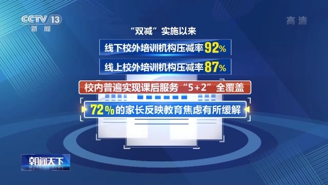 牢记总书记的嘱托,全国政协委员们以自己的实际行动推动教育事业的高质量发展。去年,教育部共收到政协委员提案1057件,采纳并出台政策措施数十项。“双减”实施以来,线下、线上校外培训机构压减率分别为92% 、87%;校内普遍实现课后服务“5+2”全覆盖;第三方调查显示,72%的家长反映教育焦虑有所缓解。