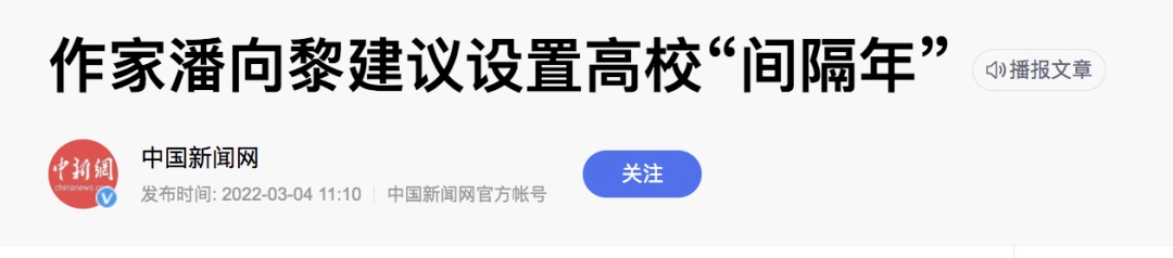 据中国新闻网消息,记者4日从全国人大代表、上海市作家协会副主席潘向黎处获悉,今年她向十三届全国人大五次会议提交有关在中国高校设置“间隔年”(gap year)的建议,期望帮助青年学子更好明确人生目标。