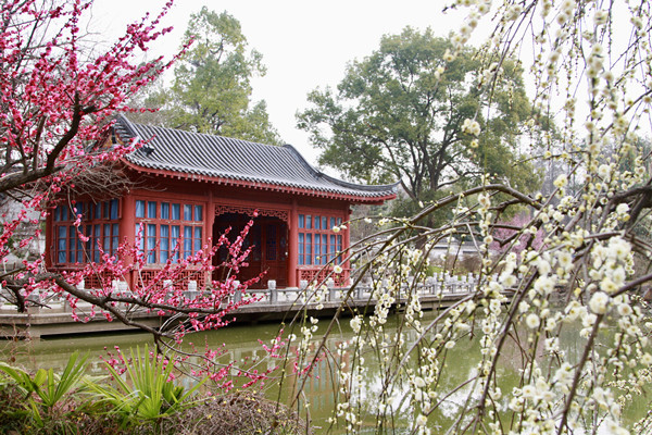 游客王女士高兴地告诉记者;“虽然最期待的‘梅祖宗’尚未开花,但今天也是大饱眼福了。阳光明媚,梅树与亭桥流水相映成趣,美得像画一样。准备听专家的,在三八节当天再来一趟。”